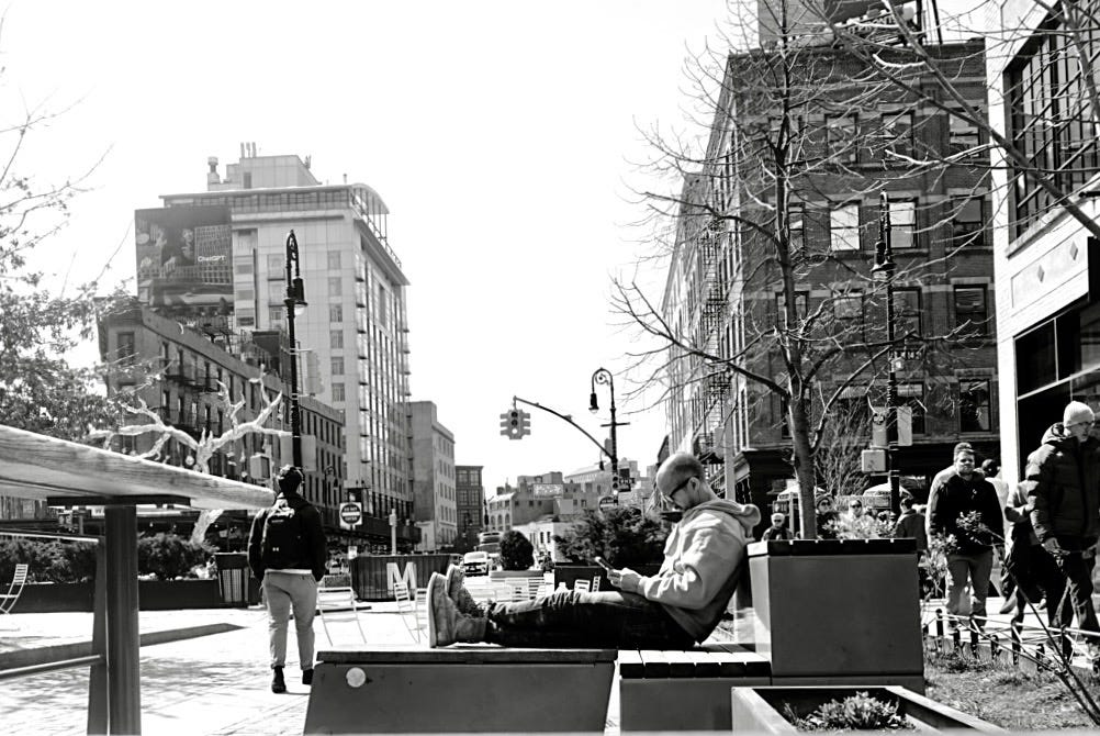 Missions completed. A moment to take a walk. Friday in New York.