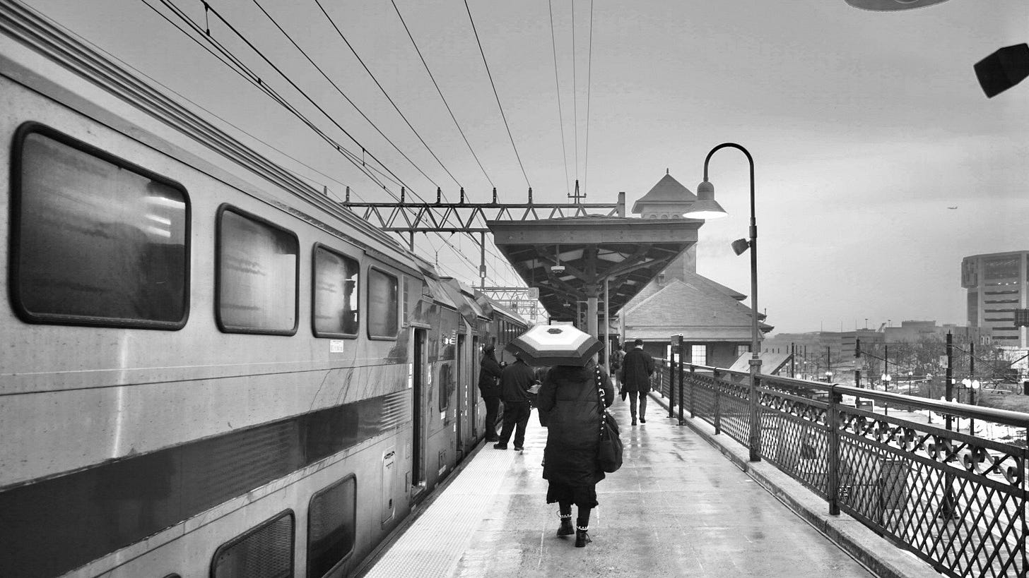 Rainy day, snow being washed away